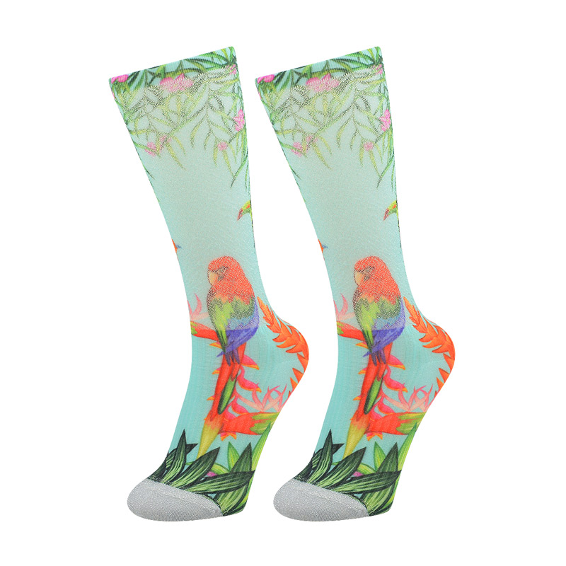 Product Name:360 degree digital printing lady knee high socksModel Number:508-3Main Material:30%nylon, 65%polyester, 5%elastane