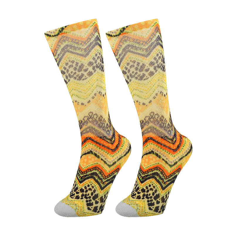 Product Name:360 degree digital printing lady knee high socksModel Number:508-4Main Material:30%nylon, 65%polyester, 5%elastane