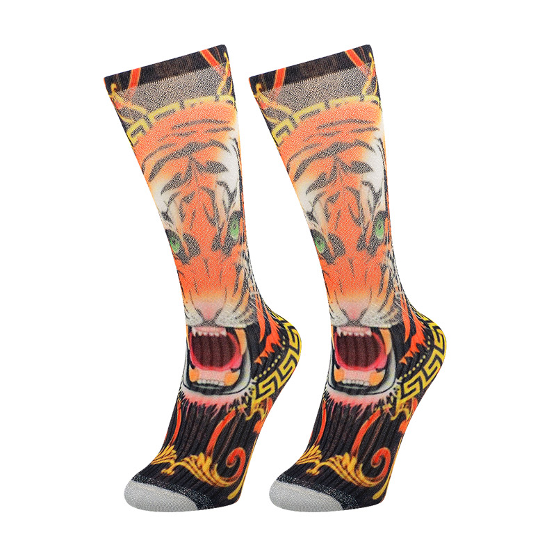 Product Name:360 degree digital printing lady knee high socksModel Number:508-1Main Material:30%nylon, 65%polyester, 5%elastane
