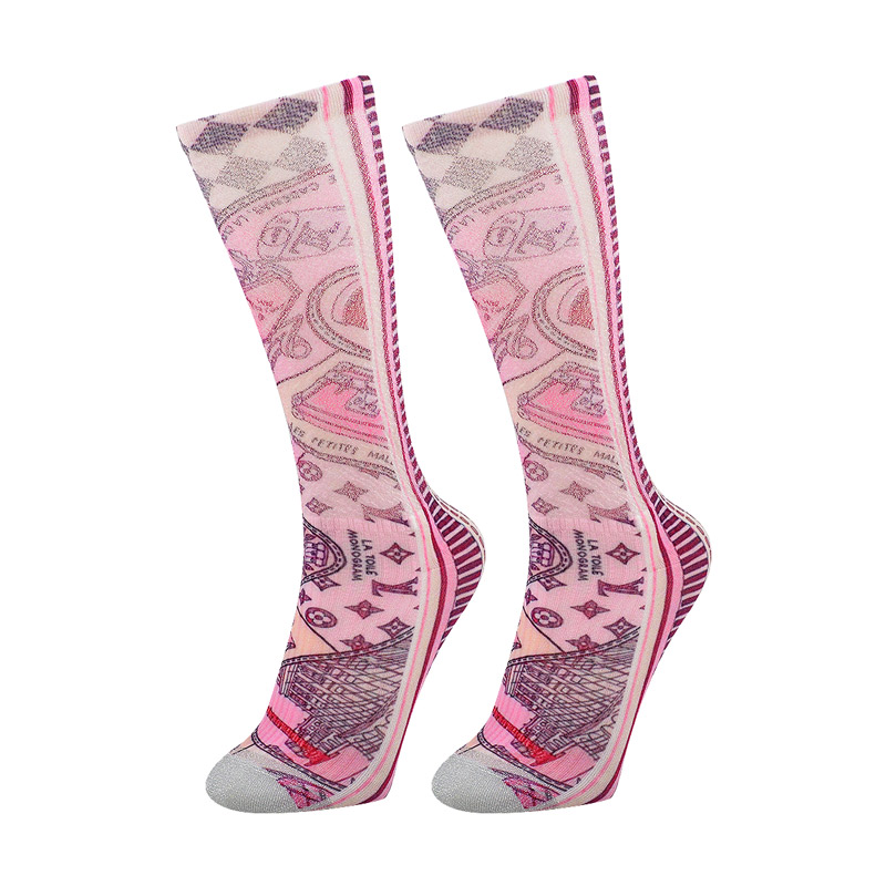 Product Name:360 degree digital printing lady knee high socksModel Number:508-6Main Material:30%nylon, 65%polyester, 5%elastane