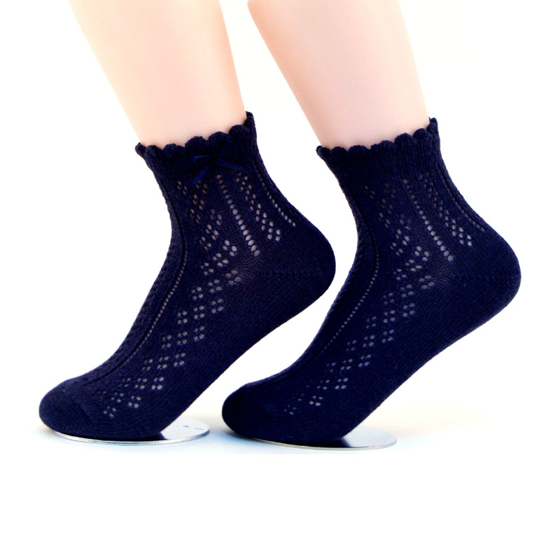 Product Name:Women's pointelle pattern rumi socks with bow on cuffModel Number:RS-009-11Main Material:70%cotton, 30%nylon