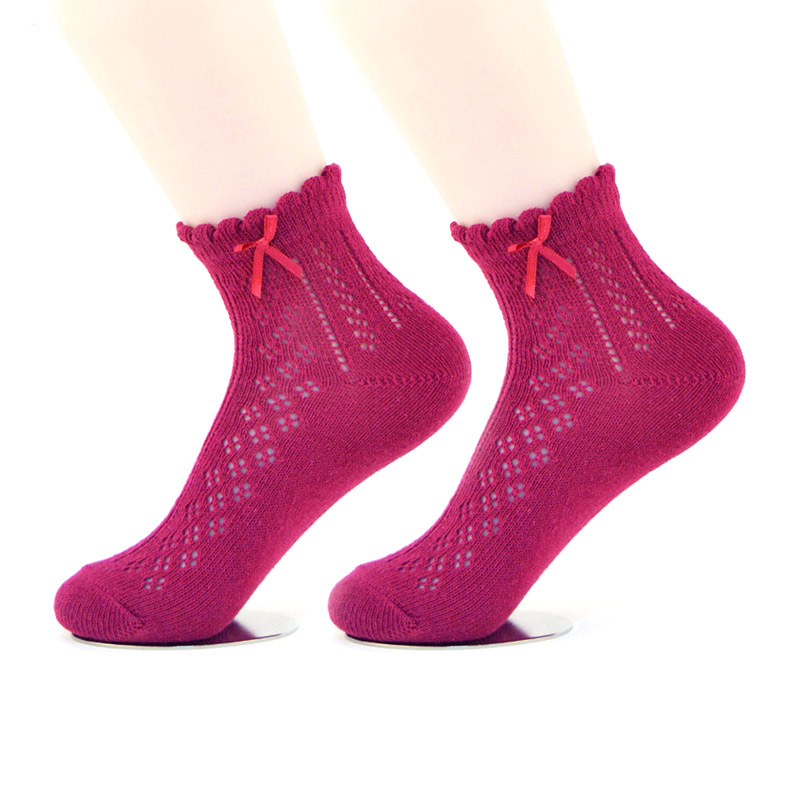 Product Name:Women's pointelle pattern rumi socks with bow on cuffModel Number:RS-009-14Main Material:70%cotton, 30%nylon