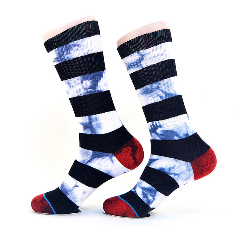 Product Name:Tie dye socks with stripe jacquard designsModel Number:MS-005Main Material:80%cotton,18%polyester, 2%spandex